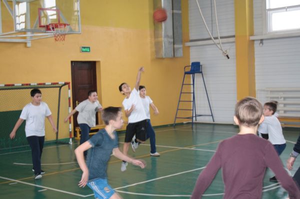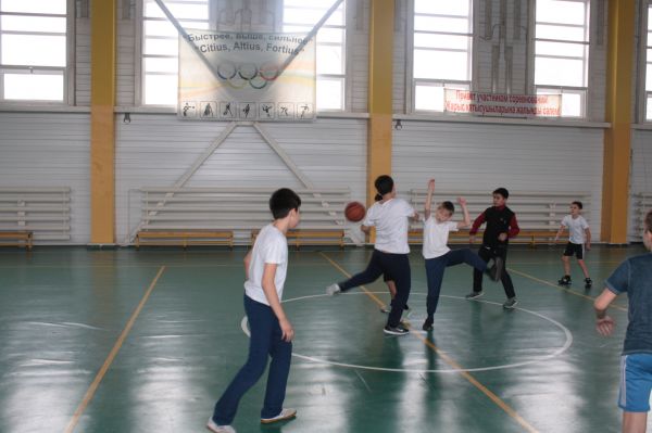 Матч между командами 6 "А" - 6 "Б" кл на Кубок лицея по баскетболу, посвященный 25-летию Независимости Республики Казахстан