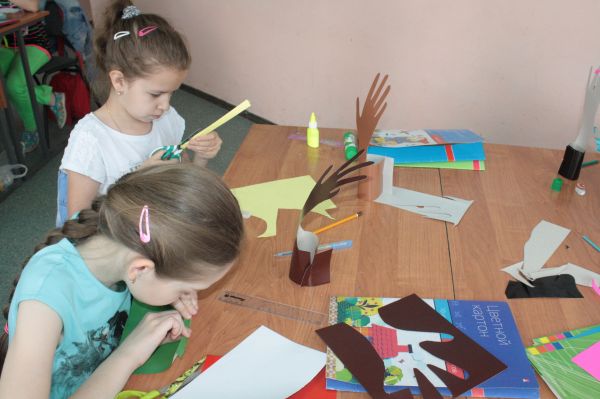 9 июня учащиеся делали разминку на свежем воздухе, усердно выполняли задания по математике и русскому языку и художественному творчеству