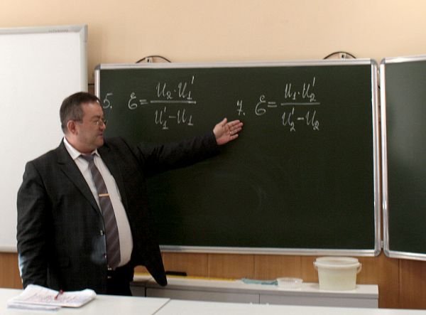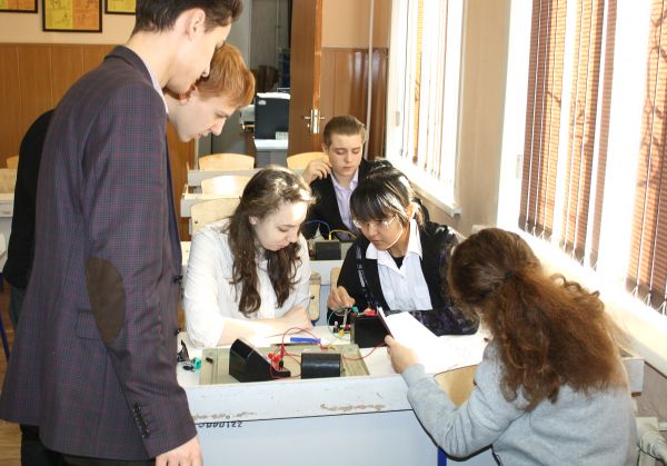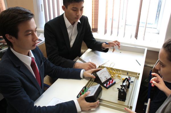 Лабораторная работа на уроке физики в 10"Б" классе. Ведет уроки учитель физики Татиев М.А.