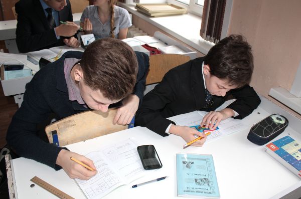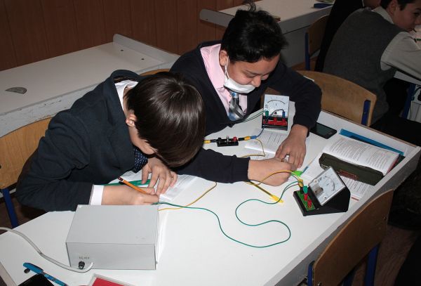 Лабораторная работа на уроке физики в 8"А" классе. Ведет уроки учитель физики Ким О.Г.