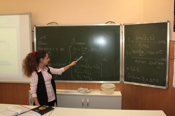 Урок физики в 10 "Б" классе. Ведет уроки учитель физики Татиев М.А.