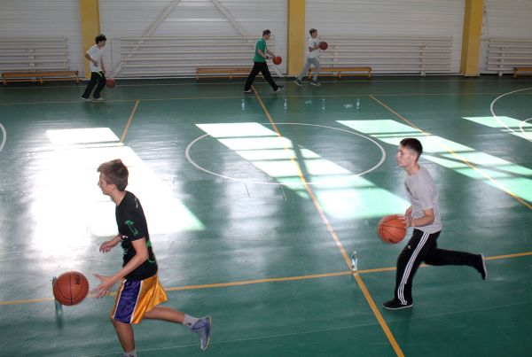 Занятия в секции по баскетболу. Ведет учитель ФК Абдулин Р.Ж.