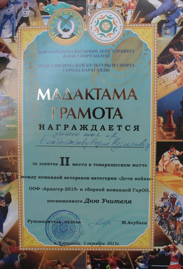 Поздравляем преподавателя НВП, Бикбатырова Радия Нурлаяновича с занятым 2 местом в товарищеском матче между командой ветеранов категории «Дети войны» ООФ «Ардагер -…
