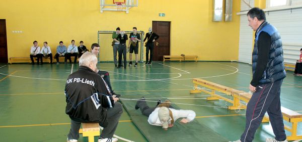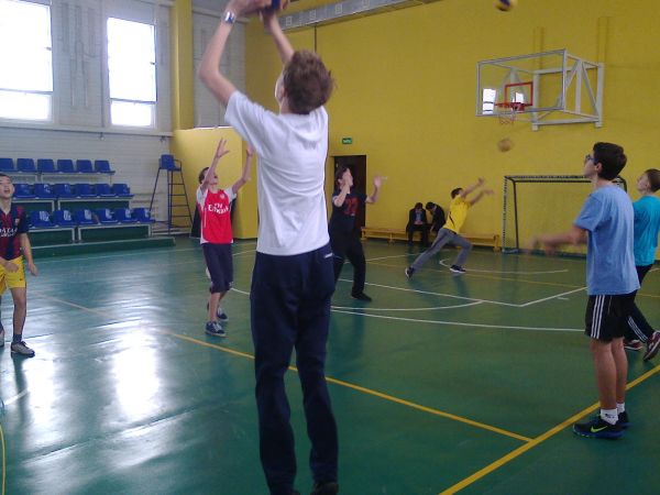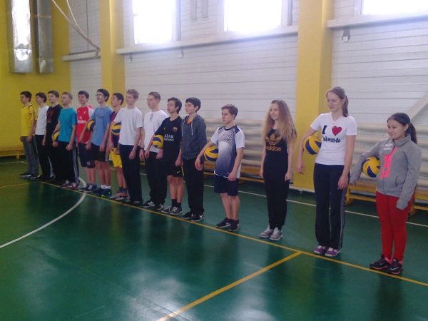 28.02.2015 в спортивном зале проходил урок физкультуры в 10 "Б" классе. Тема занятий спортивные игры волейбол. Задачи урока: