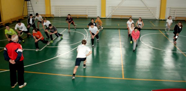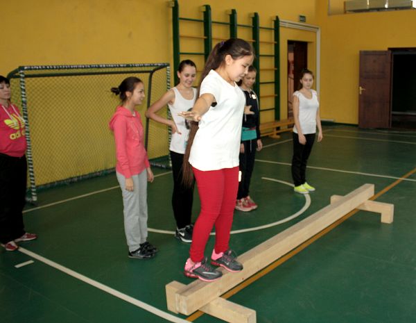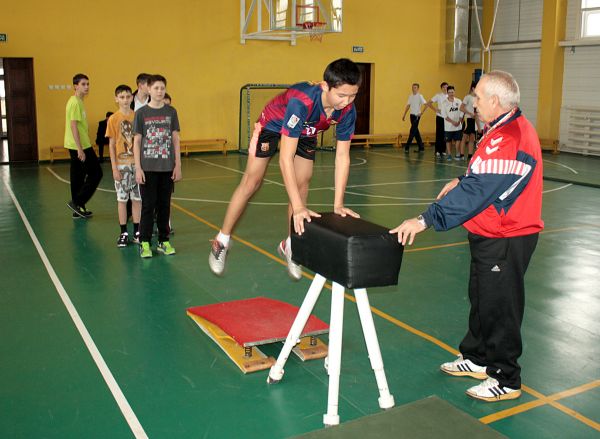 Учащиеся лицея на уроках гимнастики сперва проводят разминку, а потом переходят к выполнению упражнений.