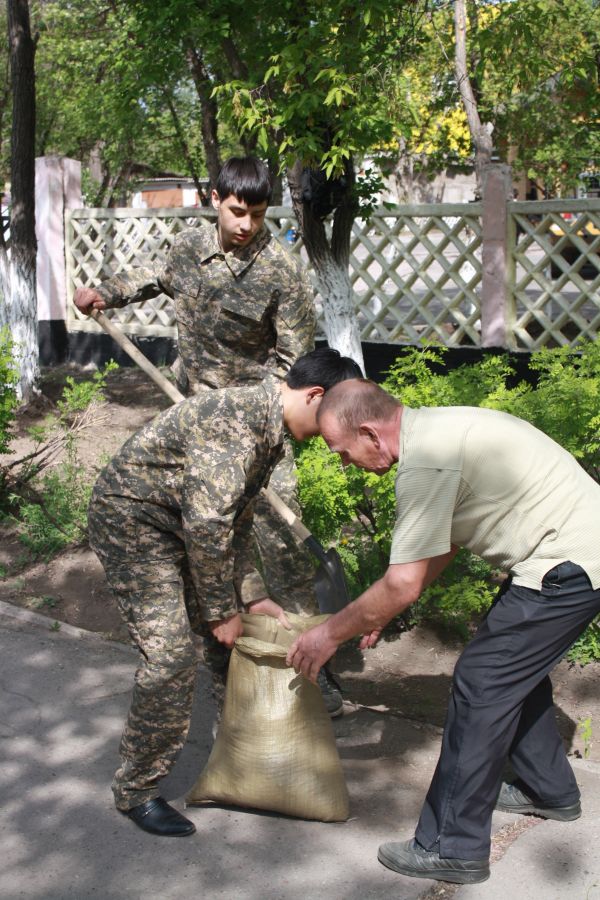 Педагоги, тех. персонал, учащиеся лицея облагораживают школьную территорию: пропалывают, поливают клумбы, косят траву, проводя…