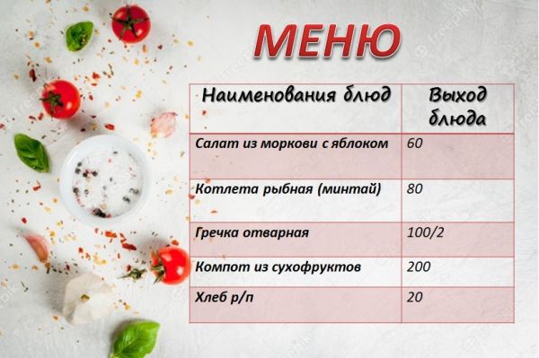 Ознакомьтесь с меню на ЧЕТВЕРГ