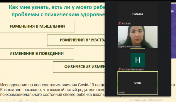 психологом школы Магавьяновой К.С. был проведен вебинар для родителей учащихся 8-х классов на тему: «Психическое здоровье подростков»