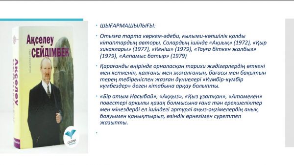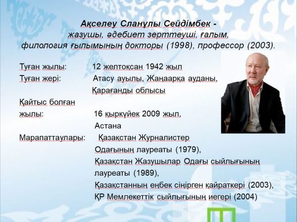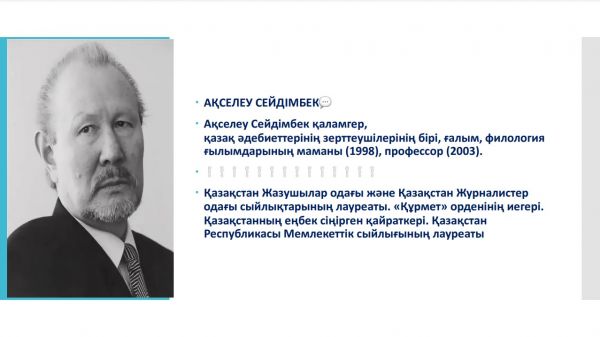 Этнограф, өнертанушы,әдебиетші, журналист, қоғам қайраткері Ақселеу Сейдімбектің туғанына - 80 жыл толу қарсаңында оқушылар(презентация/буклет сайысына) қатысты.