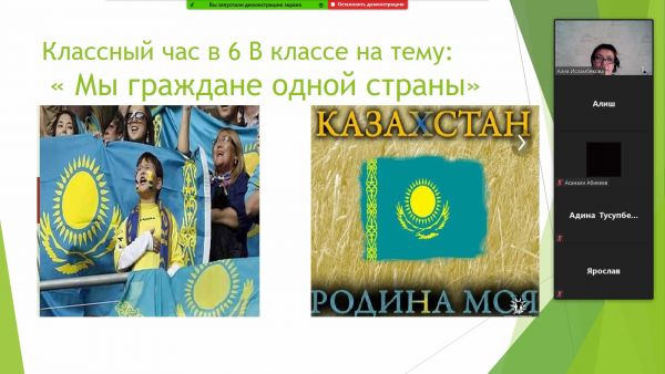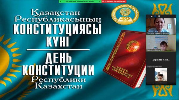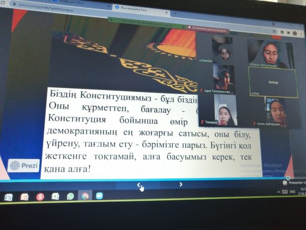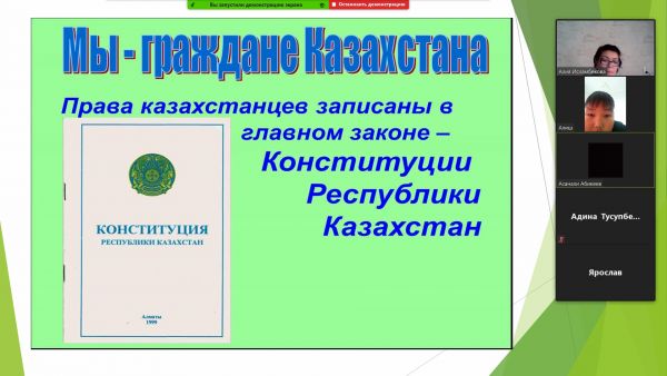 27 августа на платформе ZOOM в 5 "Г" классе прошел классный час на тему "День Конституции" . Кл.руководитель: Турыбаева А.Е.