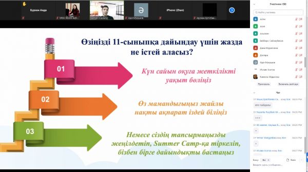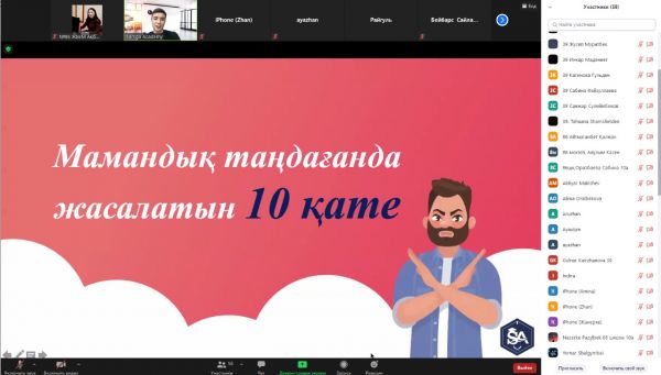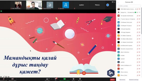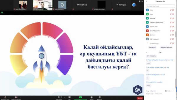 Қарағанды қаласы "Samga Academy" білім беру орталығы ZOOM платформасында "2022 ҰБТ жаңалықтары және мамандық таңдау" тақырыбында мектебіміздің 10-сынып оқушыларына арнап онлайн к…