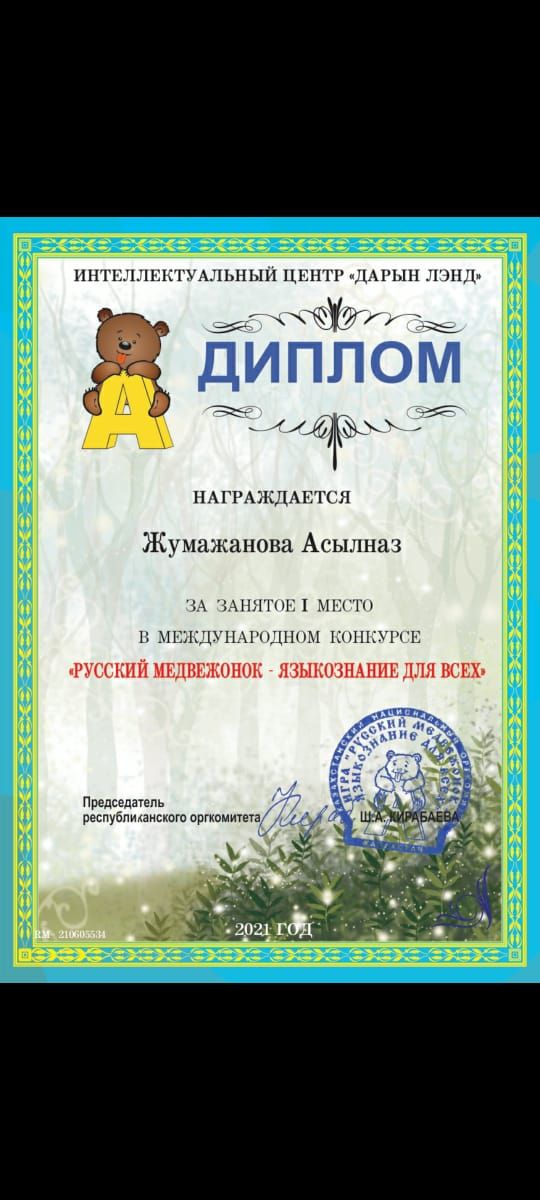 Халықаралық конкурста оқушыларымыз орынды иеленіп, дипломмен марапатталды