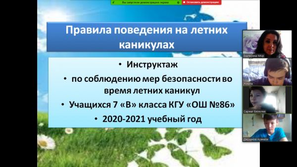 19.05.2021 7" В "сыныбында" Қауіпсіз жаз - жазғы демалыста өзін-өзі ұстау ережелері "тақырыбында сынып сағаты өтті" №86 ЖББМ "КММ 7" В "сынып оқушыларына жазғ…