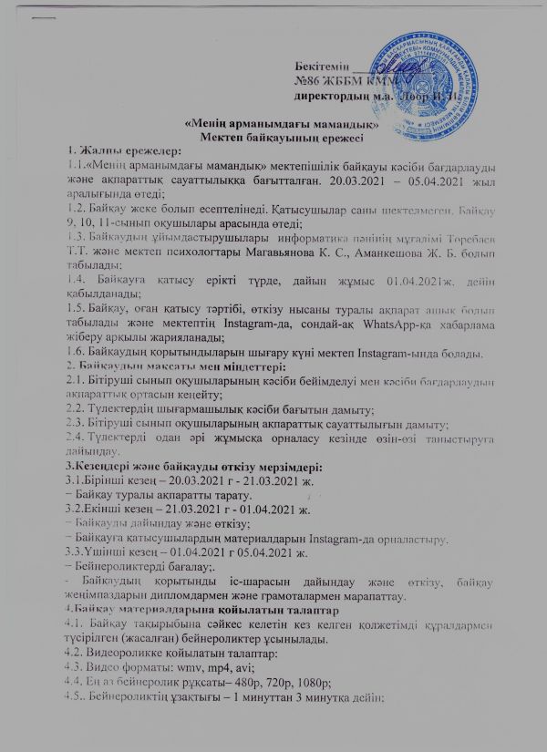 Назар аударыңыздар! 20 наурыздан бастап, 9, 10, 11 сынып оқушылары арасында, “Менің арманымдағы мамандық” байқауы өтеді.