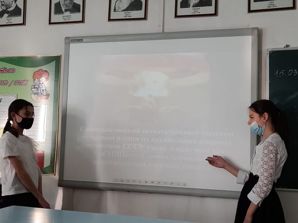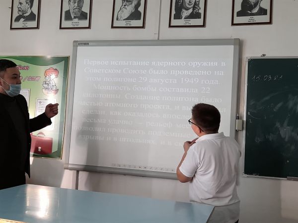 15 марта 2021 года Артыкбаев Ерлан Сапарович провел в 5 «Б» классе открытый урок на тему: «Семипалатинский ядерный полигон – атомная эпоха в Казахстане». Учащиеся актив…
