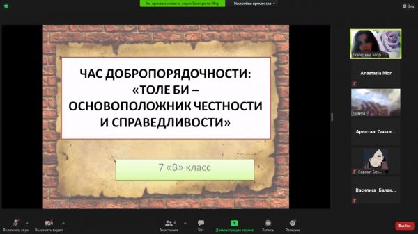 17.03.2021 в 7 "В" классе прошёл ЧАС ДОБРОПОРЯДОЧНОСТИ на тему: «ТОЛЕ БИ – ОСНОВОПОЛОЖНИК ЧЕСТНОСТИ И СПРАВЕДЛИВОСТИ»