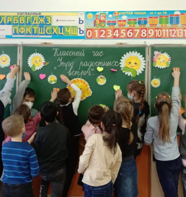 Сегодня в рамках декады самопознания прошёл классный час в 1 В классе на тему "Утро радостных встреч"