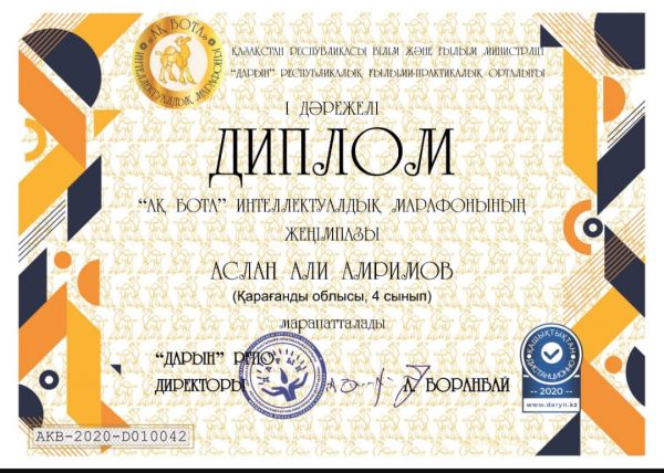 Республикалық «Ақбота» интеллектуалды сайысында 2 орын алған 7 – сынып, 3 орын алған 9 – сынып, оқушыларын дипломдарымен құтты…