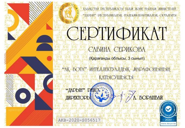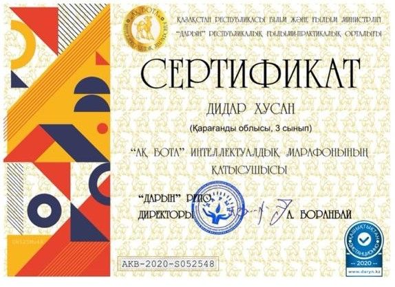 Республика бойынша "Ақ бота"интеллектуалдық марафон олипидасы өттіп 3"б"сынып оқушылары қатысып