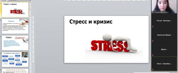 «Стресс және дағдарыс» тақырыбында zoom форматта психологпен кездесу өтті