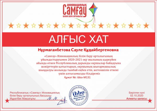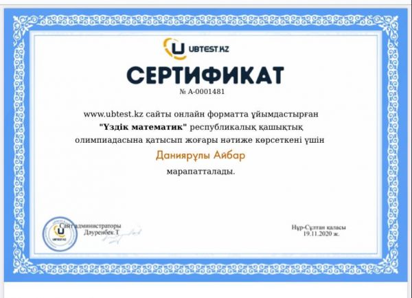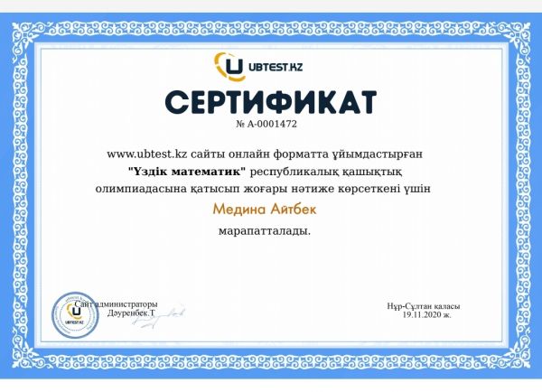 Республикалық қашықтық олимпиадасына қатысып, жоғары нәтиже көрсеткендері үшін 3А-сынып оқушылары Айтбек Мединаны және Даниярұлы Айбарды құттықтаймыз!