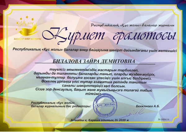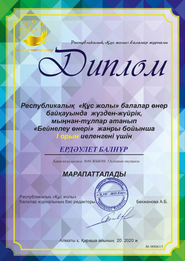 Республикалық "Құс жолы" балалар өнер байқауының жеңімпаздары Кихмет Аян мен Ердәулет Балнұрды құттықтаймыз!