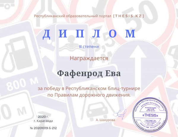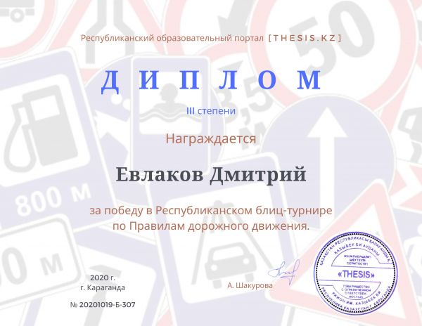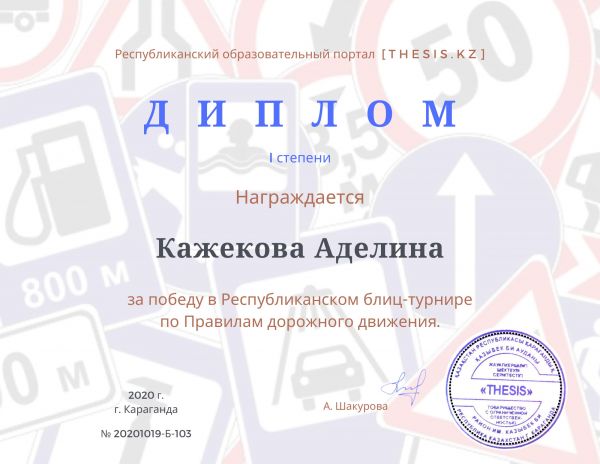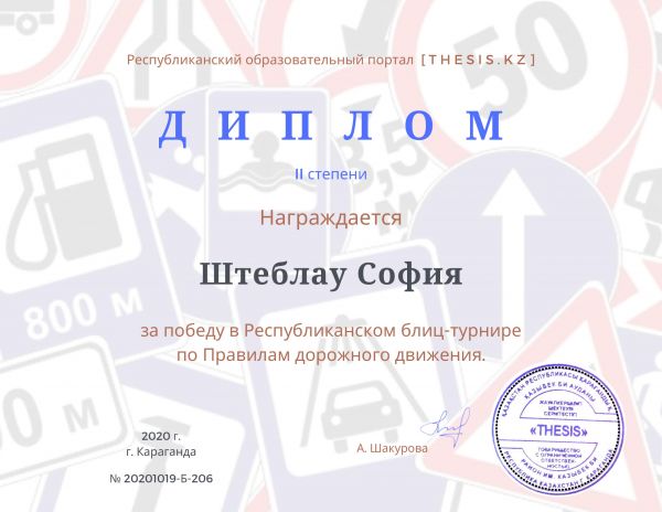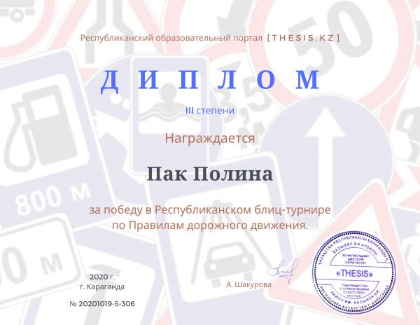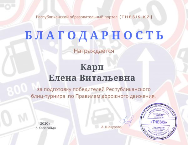Победителей Республиканского блиц - турнира по Правилам дорожного движения - учащихся 3 «Д», 4 «Г» классов, а также классного руководителя Карп Елену Вит…