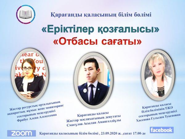 "Отбасы сағаты", "Еріктілер қозғалысы" тақырыбында "Қарағанды қаласының білім бөлімі" ММ-сiнiң Facebook ресми парақшасында 23.10.20ж сағат 17:00 де тiкелей эфи…