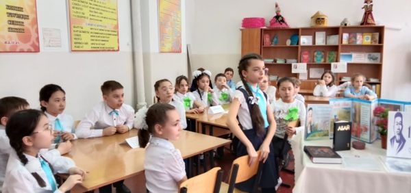 Ұлы Абайдың өмірі мен шығармашылығы туралы мәліметтер беру, оқыған шығармаларын еске түсіру арқылы білімдерін тереңдету, өлеңнің мағынасын жан - жақты түсіндіру мақсатында 4 Б, 4 В, 4 Г сыныптарының…