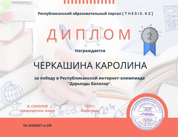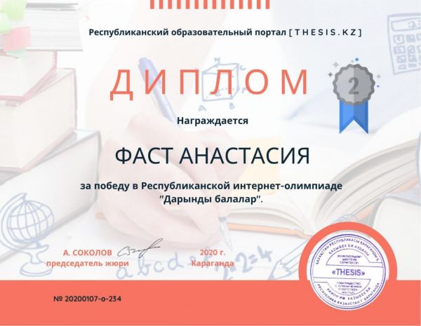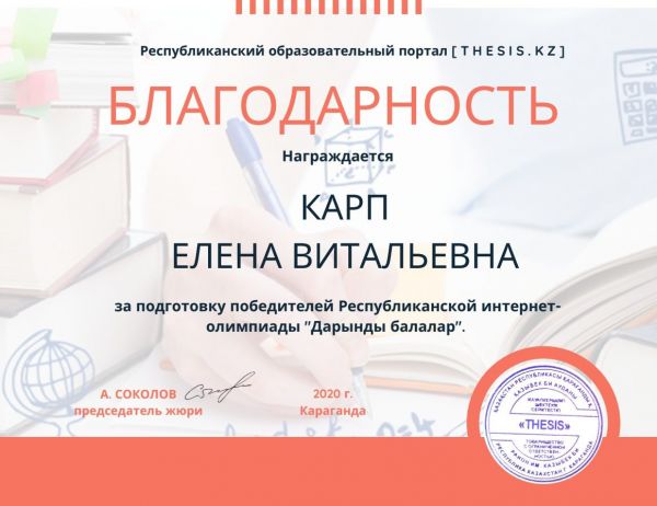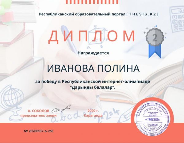 Учащиеся 2д и 3г класса, под руководством классного руководителя Карп Е.В. приняли участие в республиканской интернет- олимпиаде "Дарынды балалар" .Ребята заняли 1 и 2 места. Желаем…