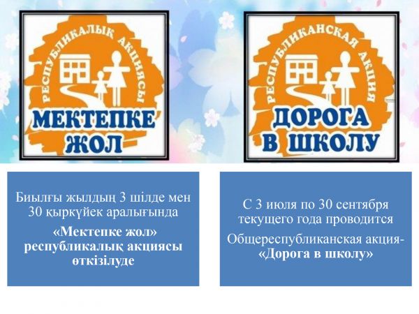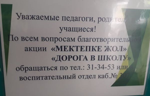 3 шілде 30 қыркүйек аралығында республикалық «Мектепке жол» акциясы «Жүректен жүрекке! » ұранымен өтуде.