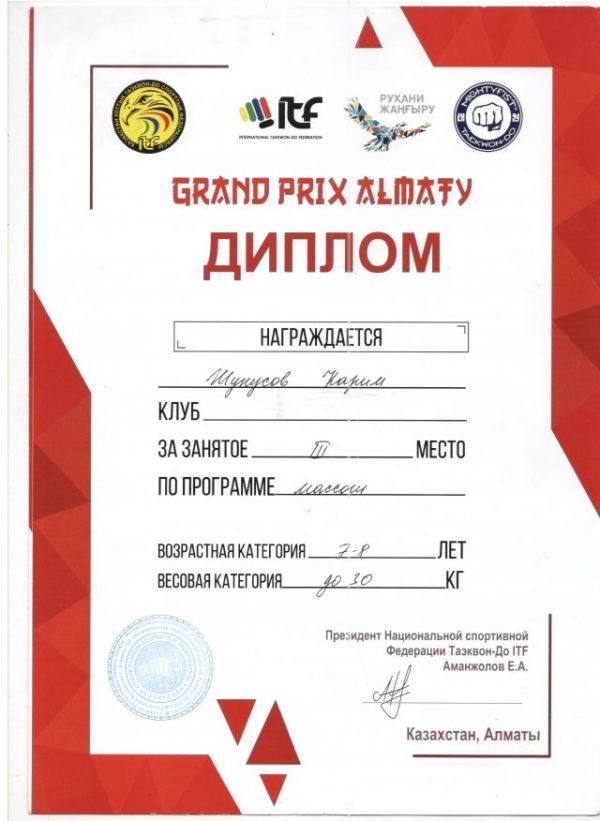 Таэквон-До бойынша халықаралық жарыстарда қола медаль жеңіп алған 3 Г сынып оқушысы Жунусов Карим марапатталды.