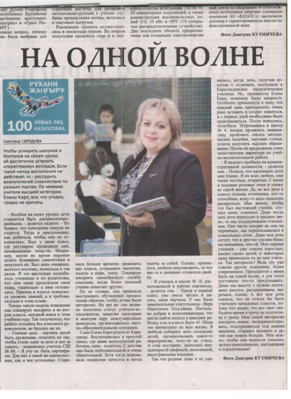 В газете «Индустриальная Караганда» вышла статья о педагоге нашей школы.
