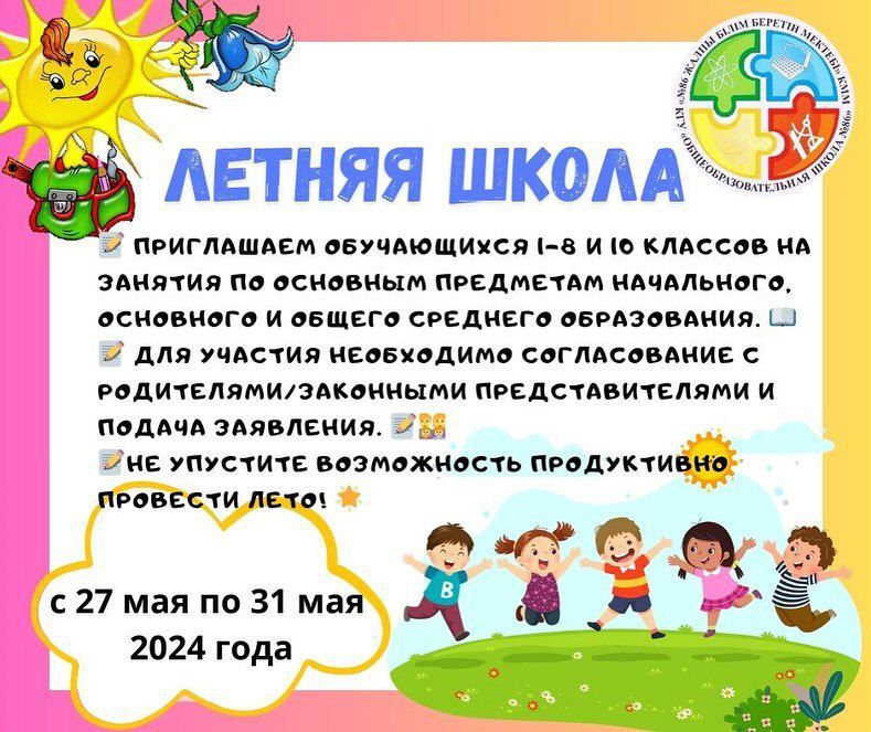 Летняя школа 2024 в ОШ#86 прошла с блеском! Занятия проводились по четко составленному плану, учитывая потребности обучающихся. Уроки длились по 30 минут, что позволило ребятам максимально эффективн…