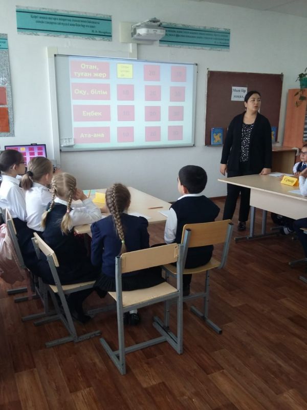 В рамках Недели языков народов РК «Тіл – рухани жаңғыру механизмы» с учащимися 6 «В» класса был проведен интеллектуальный конкурс "Қызықты қазақ тілі". Урок б…