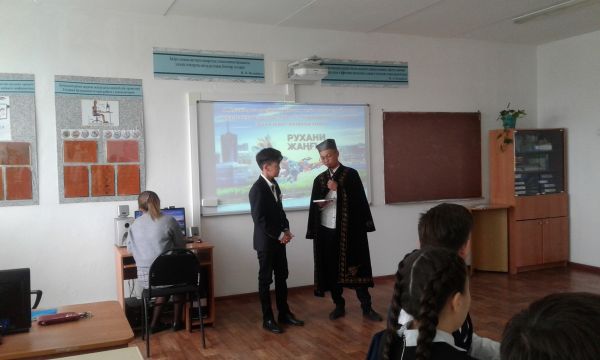 В рамках Дня языков РК 12 сентября в школе было прооведено мероприятие «Духовное возрождение и Ахмет Байтұрсынов». Оно было организовано учителем казахского языка и литературы, рук…