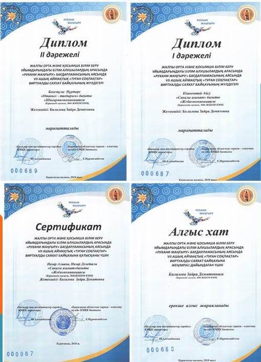 11 сынып оқушысы Алтынбай Сырым геологии пәнінен олимпиадаға қатысып сертификат иеленді. Жетекшісі; Исаинова Айжан