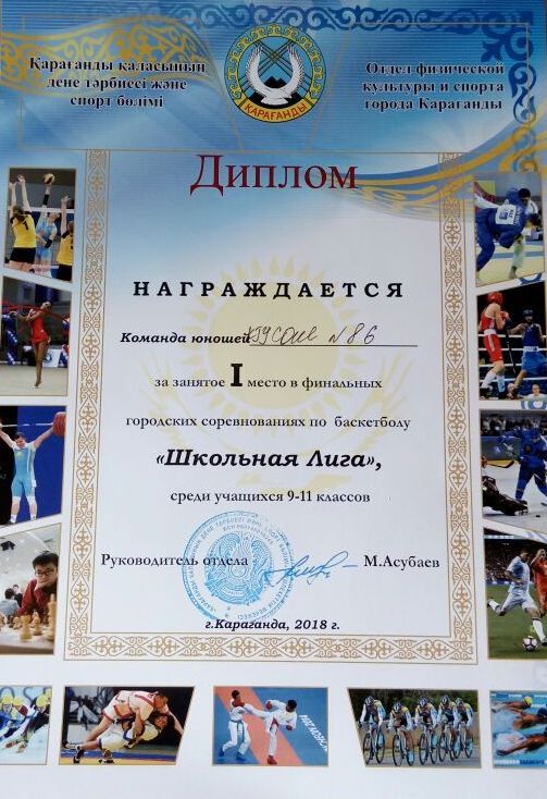 12 -17 ақпан аралығында өткен 9-11 сыныптар аралығында "Школьная лига" атты баскетболдан қалалық жарыстан 1 орын алғаны үшін №86 мектеп жастар командасын құттықтаймыз!