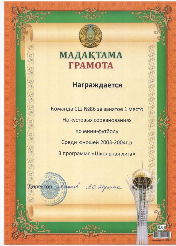 «Мектеп лигасы» бағдарламасы бойынша  жасөспірімдер арасындағы мини-футболдан өткен жарыста  біздің мектеп командасы 1 орын  алды. Жарыс №102 мектеп-гимназияд…