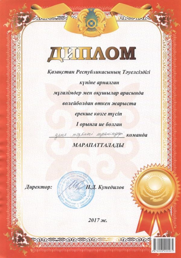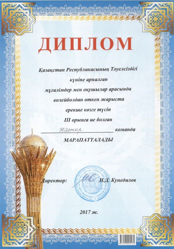 Мектебімізде Қазақстан Республикасы Тәуелсіздігі күніне арналған мұғалімдер мен оқушылар арасында волейболдан жарыс өтті. Жарысқа 6 команда қатысты.