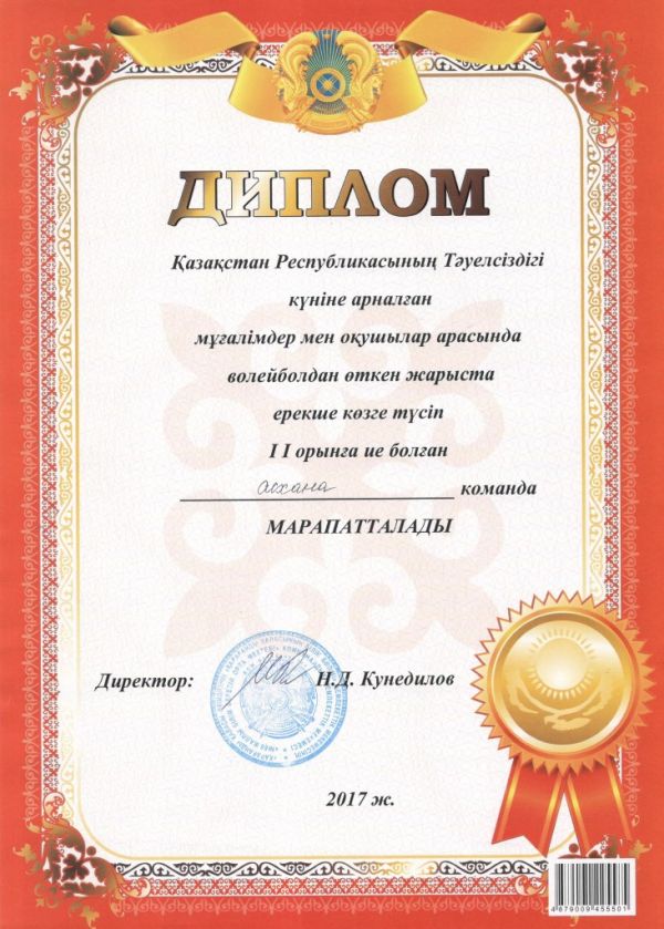 Яковенко Изабэлла Владимировна Еуразиялық қолдау орталығы және жастарды дамыту орталығында өткен "Үздік сабақ" атты әдістемелік әзірлемелер байқауынан I дәрежелі диплом иеленді. Байқау жұ…