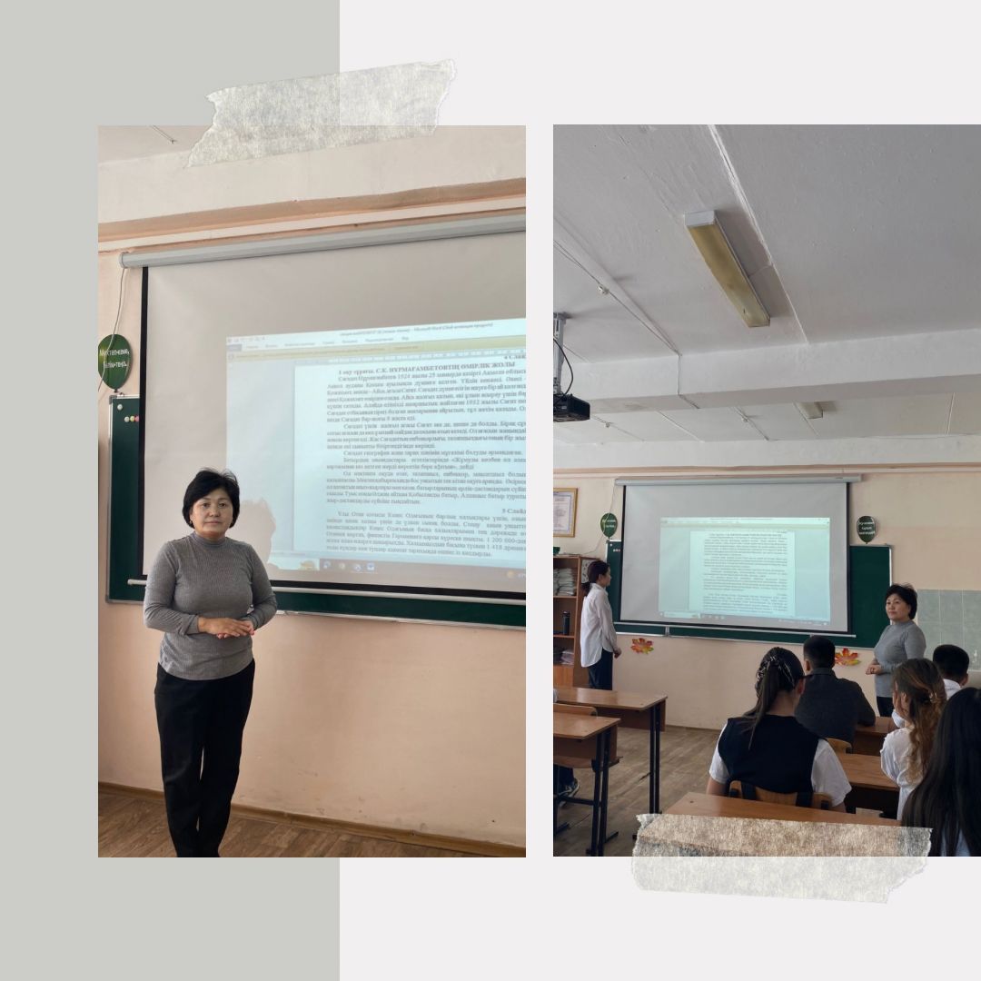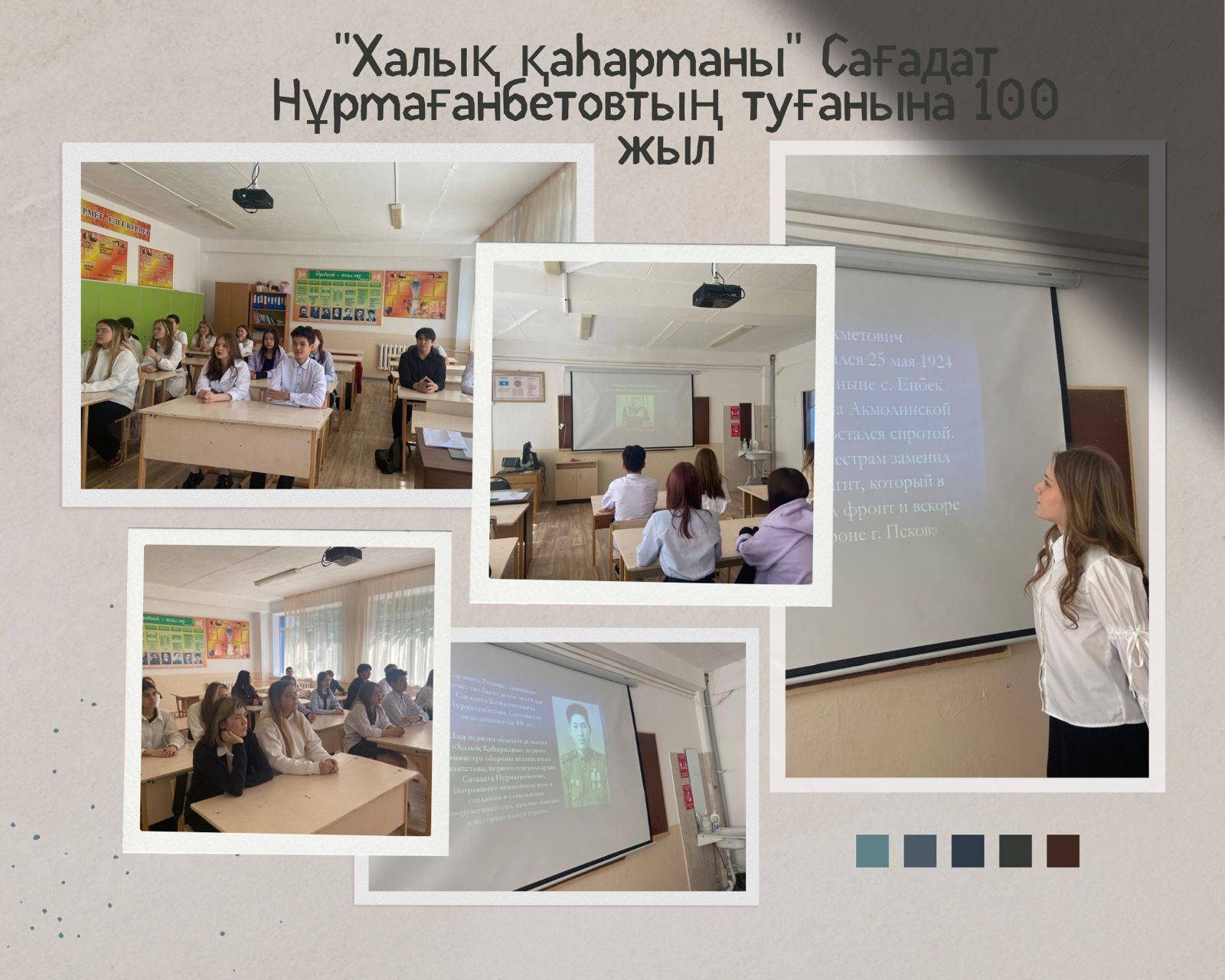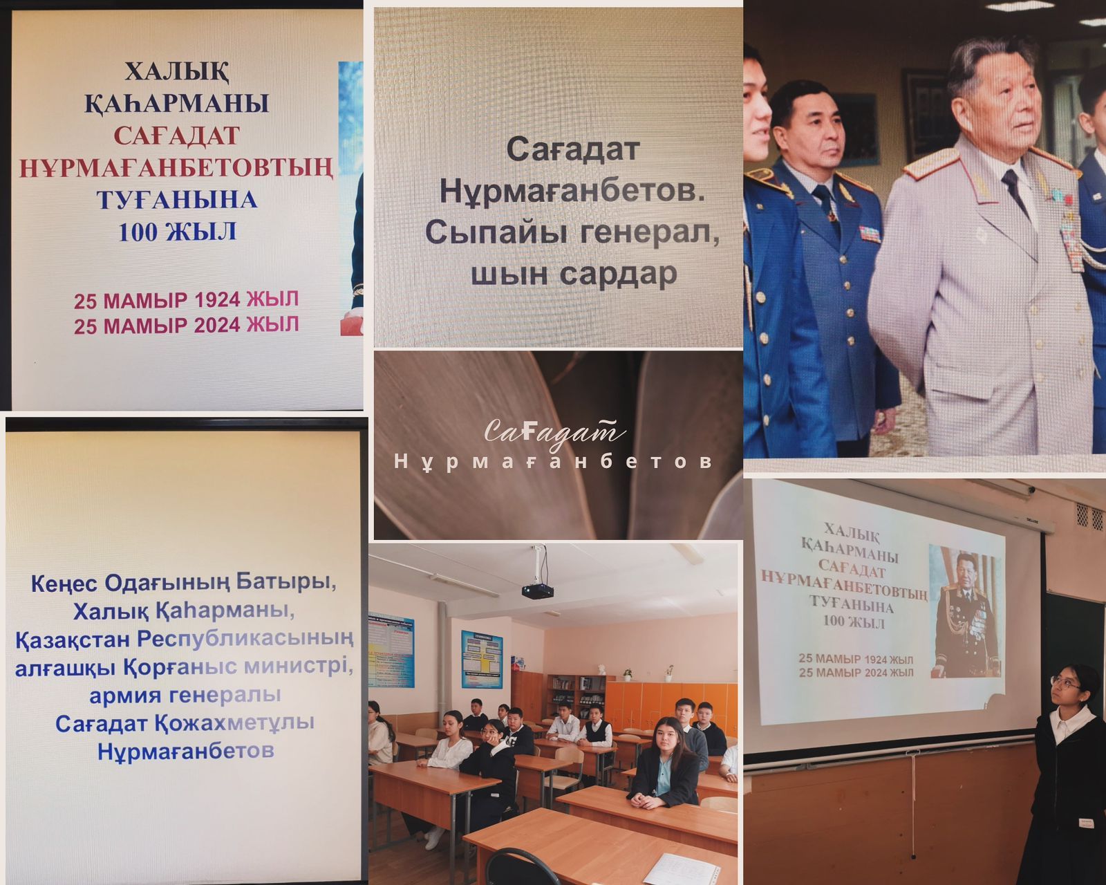 С. Нұрмағанбетовтың 100 жылдығына орай “ С.Нұрмағанбетов халық үшін туылған батыр” атты сынып сағаты 9 ә сынып оқушыларымен өтті.