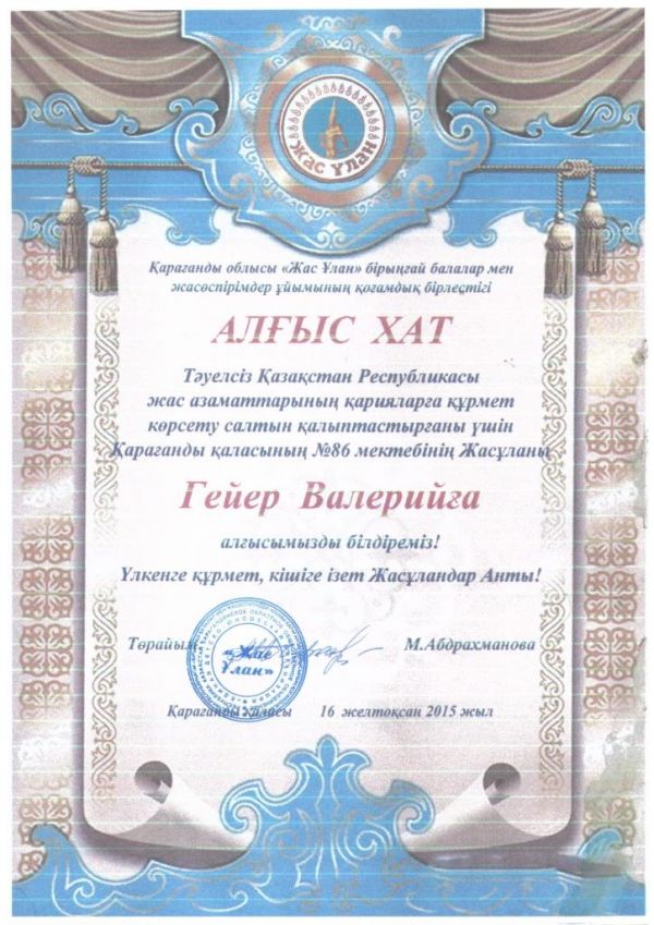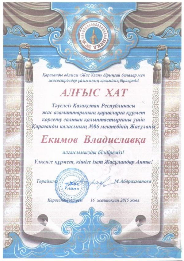 2015 жыл – Қазақстан халқы Ассамблеясының жылы атауымен өтуде. Осы мақсатпен 28-ші қарашада бастауыш сынып мұғалімі Касаинова Гульназ Амангельдиновна 2 «Ә» сыныбында «Д…