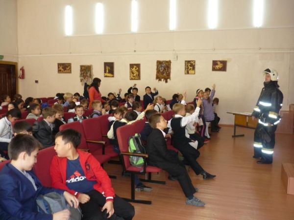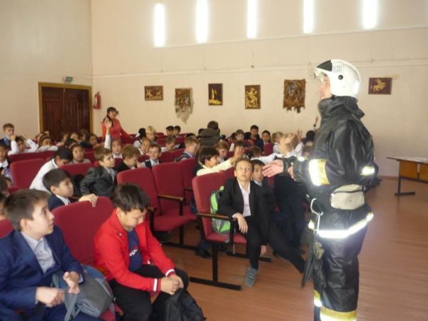 Встреча учащихся школы с пожарным-спасателем