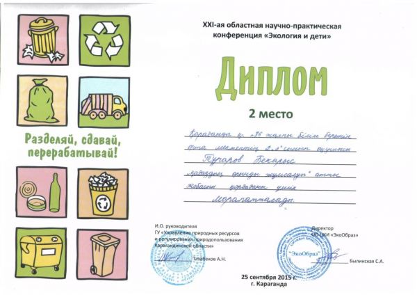 1 место по волейболу и 1 место в общекомандном зачёте на Х областной Спартакиаде АРАЙ-2015 г.Жезказган. 10-12.09.15. Учитель физкультуры Ля-Круа Наталья Игоревна.
