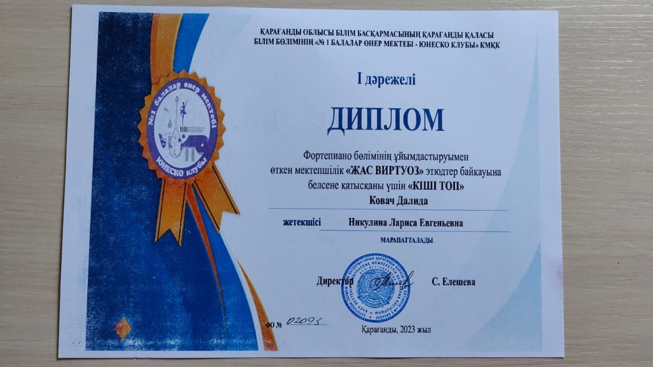 Ученица 1В класса Ковач Далида приняла участие в музыкальном конкурсе и заняла 1 место.Поздравляем!!!