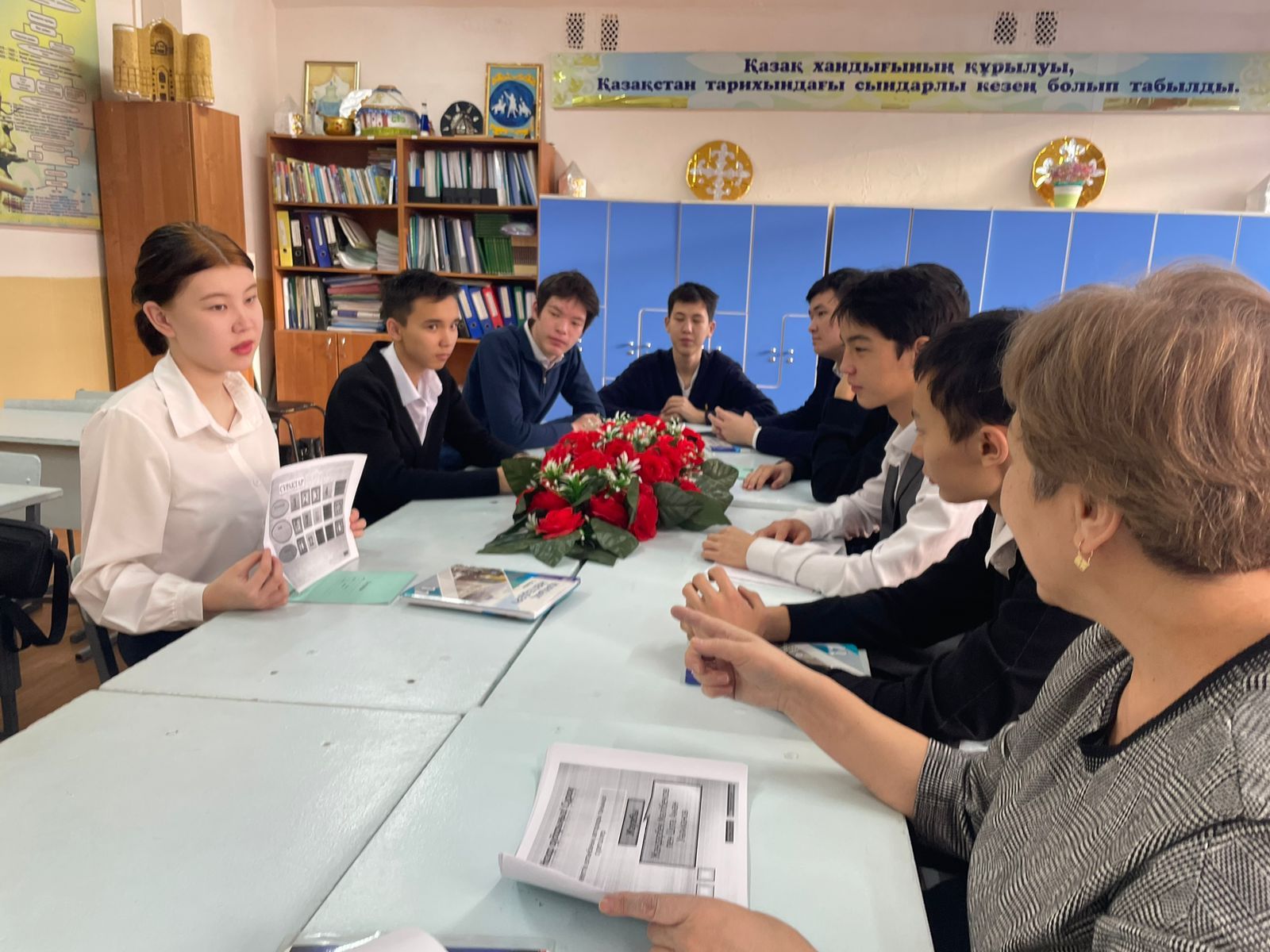 08.12.23 ж. 11 А сынып оқушыларымен “Заң және біз” атты дөңгелек стөл өткізілді. Отырыс барысында оқушылар өз құқықтары жайлы айтты. Заңдардан мысал келтірді. Жағдаяттарды талдады.