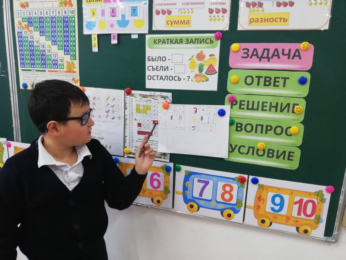 Математикалық сауаттылық апталығына байланысты 1 “Ә” сыныбында «Пішіндер әлемі» атты сайысы өтті.