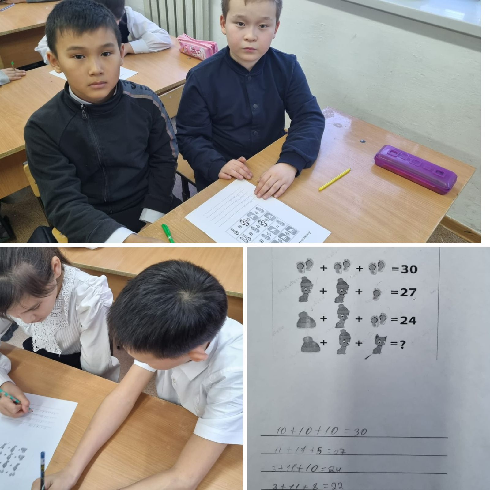 4 “А ” сыныбында «Мен математикамен доспын» атты логикалық есептер шығарды. Логикалық есептер оқушының логикасын дамуына және өздігінен ізденіп жұмыс жасауына мүмкіндік беред…