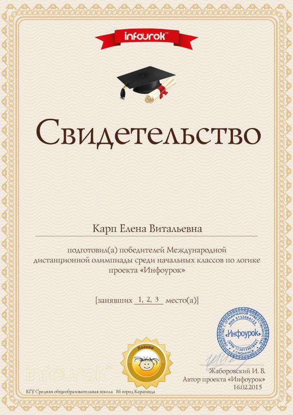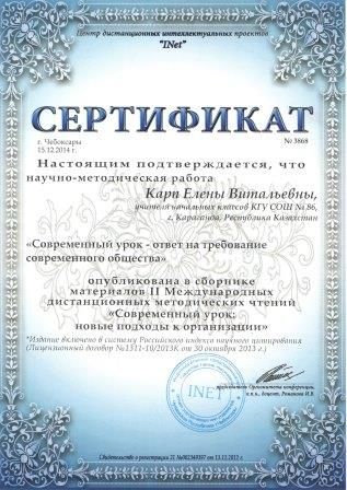 Орыс тілінде оқытатын бастауыш сынып мұғалімдері Карп Елена Витальевна және Фролова Наталья Сергеевна ОЖЖ белсенді қатысушылары болып табылады. Сайтта жарияланған жұмыстары үшін олар жарияланғаны ту…